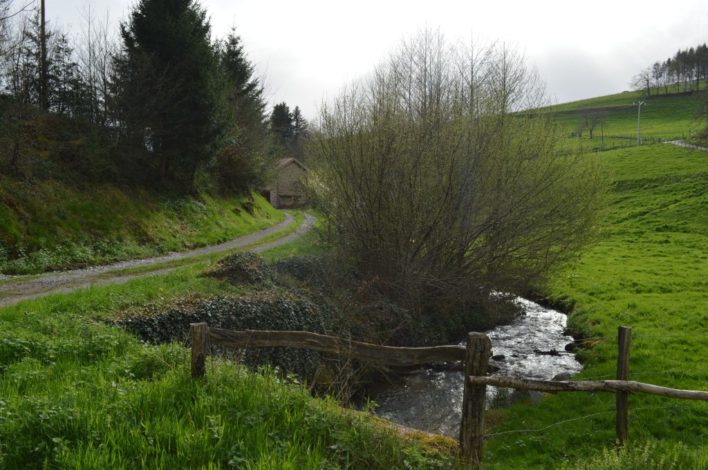 Une maison en pierres, ancienne habitation adjacente à une usine textile du 19e siècle, au cœur de la campagne du Beaujolais Vert